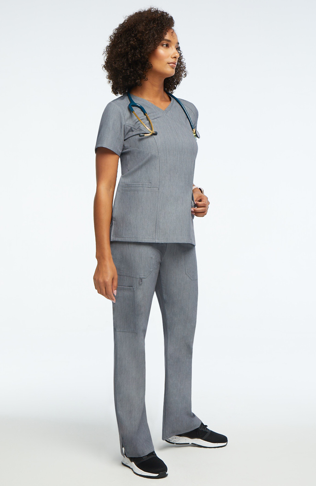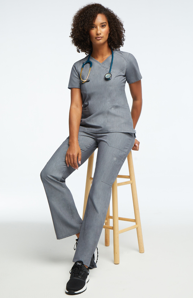 Plenty of pocket space and a comfortable, modern fit make the Luxe Supreme by AllHeart Women’s Mock Wrap Solid Scrub Top & Cargo Scrub Pant Set a winning combination. The improved range of motion allows for easy bending and stretching, with durable fabric that can keep pace.