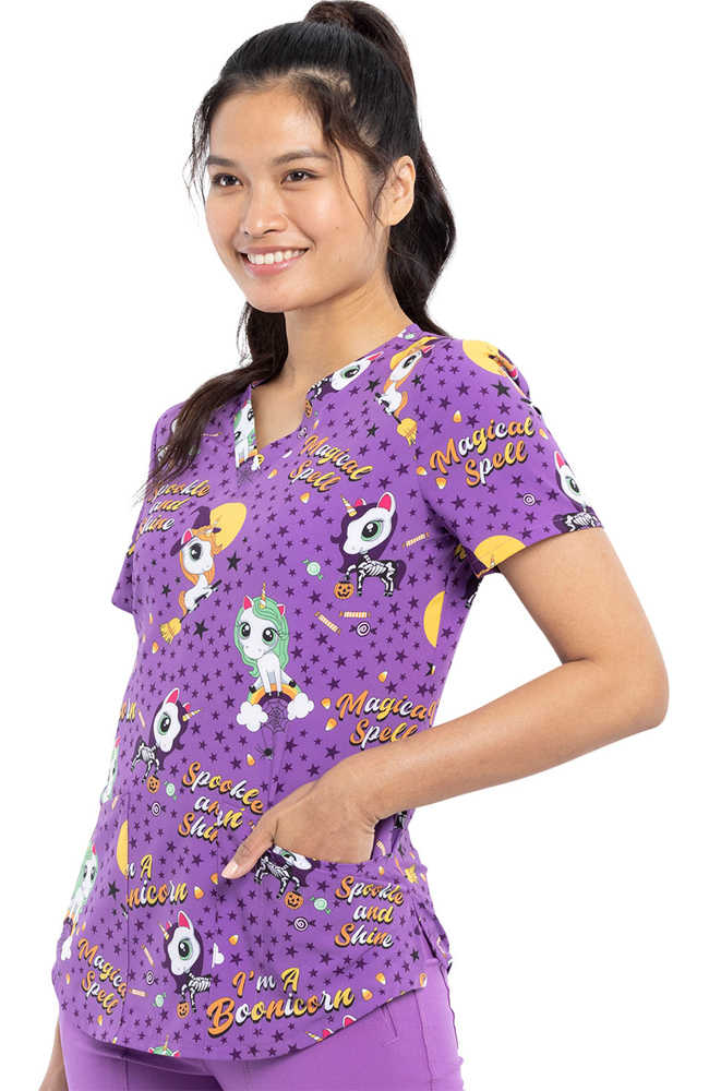 Cherokee Clearance Women’s Boo-Nicorn Magic Print Scrub Top