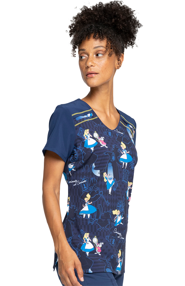 Who knows what adventures you’ll find when you wear the Tooniforms by Cherokee Women’s Curious Events Print Scrub Top. This charming scrub top has contrast sleeves and two front pockets for your must-haves.