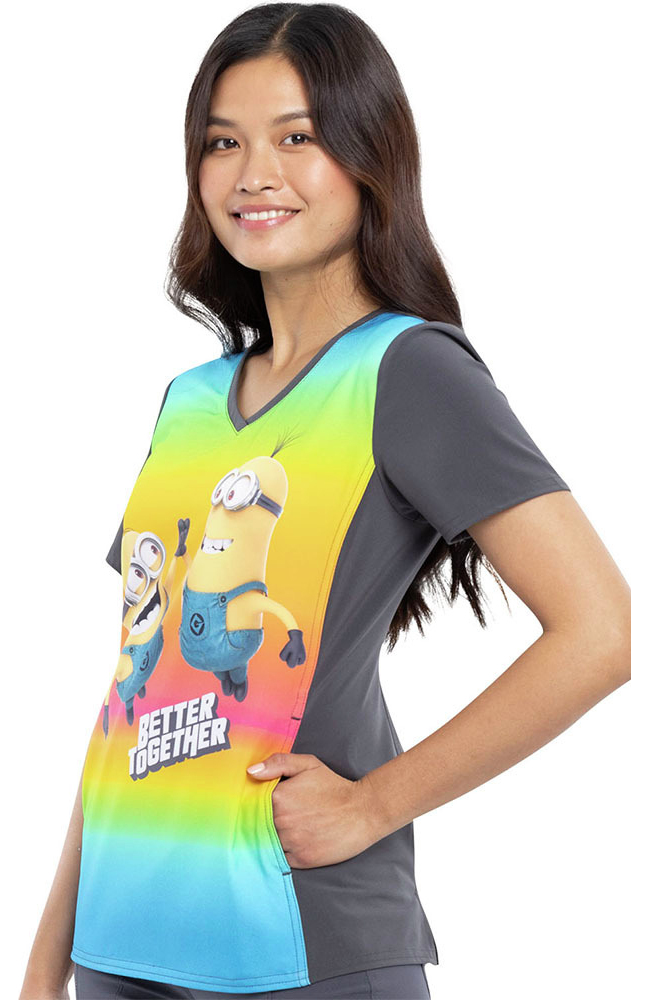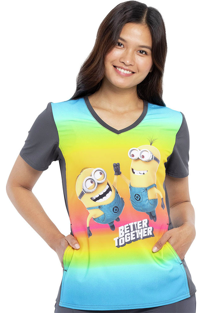 Bring the energy on your next shift with the Tooniforms by Cherokee Women’s Friends Together Print Scrub Top. The ombre backdrop and lovable minion characters add energy to your day.