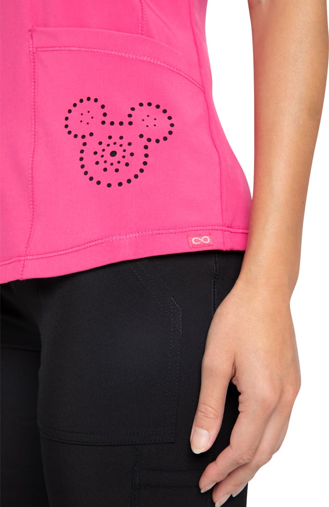 Mickey Mouse fans will want to scoop up the Infinity by Cherokee Women’s Mock Neck Solid Scrub Top. The laser-cut Mickey logo keeps the look elevated, while the ribbed knit back panel ensures that it’s as comfortable as it is cute.