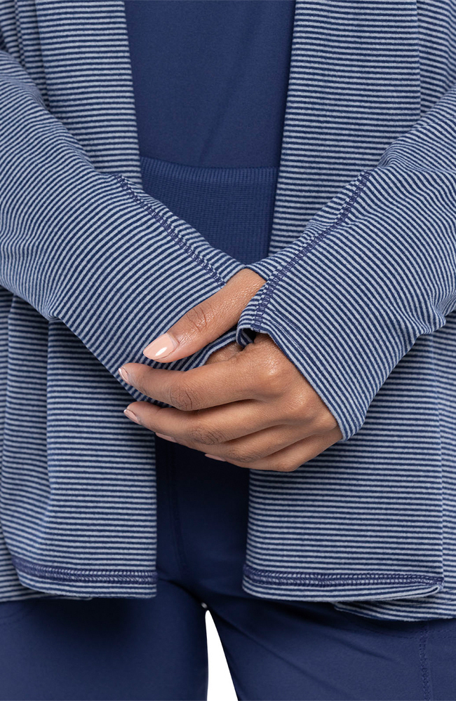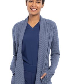 Dress to impress in the ultra-comfortable, Infinity by Cherokee Women’s Open-Front Stripe Print Scrub Jacket. This lovely layer features a fashionable micro-stripe that adds a hint of texture to your look.