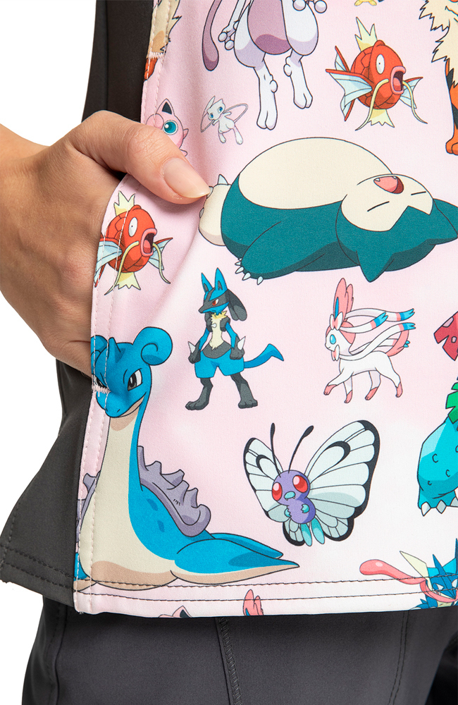 You’re sure to catch ’em all when you sport the Tooniforms by Cherokee Women’s Pokemon Party Print Scrub Top. This fun scrub top is sure to be a hit in pediatric settings – kids will love seeking out their favorite Pokemon.