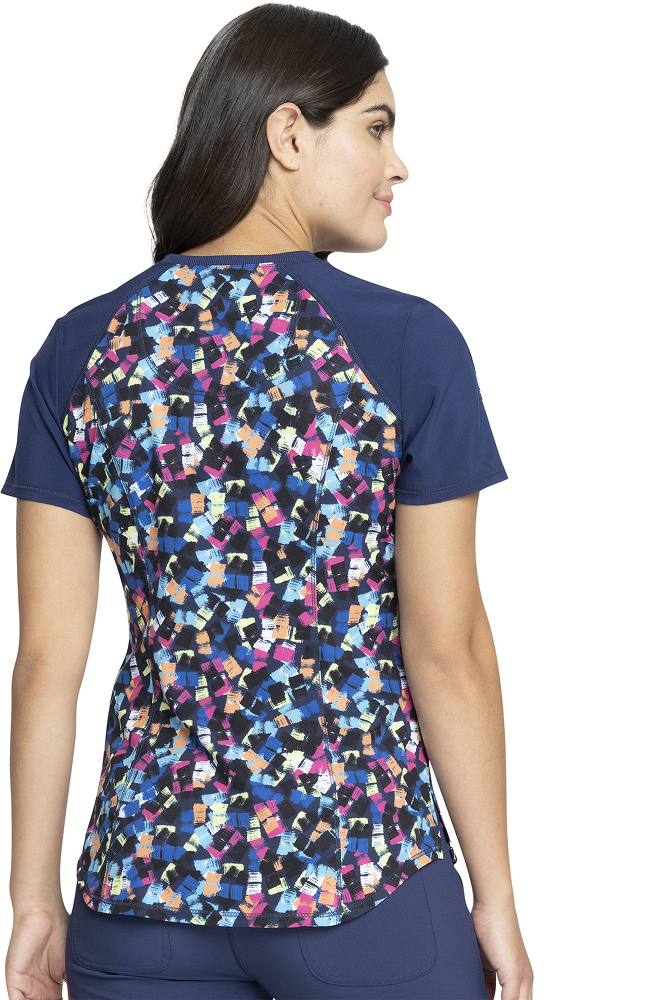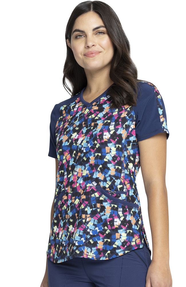 Rib knit panels add a sporty touch to the Infinity by Cherokee Women’s Tech Texture Print Scrub Top. The colorful print makes this scrub top easy to mix and match.