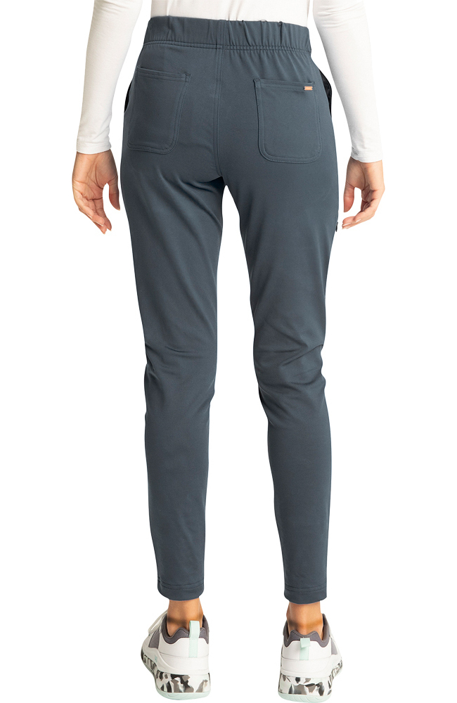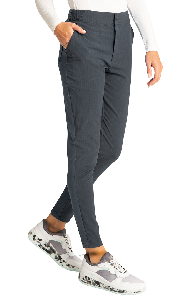 With a woven front and a knit back, the STATEMENT by Cherokee Women’s Zip Fly Tapered Leg Scrub Pant is the ultimate in stylish comfort. Five pockets give you plenty of utility, while the 4-way stretch fabric lets you move freely.
