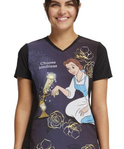 Let Belle and Lumiere add some kindness to your day in the Tooniforms by Cherokee Women’s Choose Kindness Print Scrub Top. Featuring beloved characters from Beauty and the Beast, this adorable scrub top is also fully functional with hidden pockets for storage and a curved hemline that looks great tucked in or out.