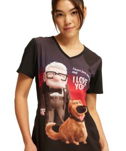 Lift up everyone’s spirits in the Tooniforms by Cherokee Women’s Dug The Dog Print Scrub Top. Designed with a hidden front slip pocket for all your needs, this printed scrub top is flattering, functional, and built for comfort.