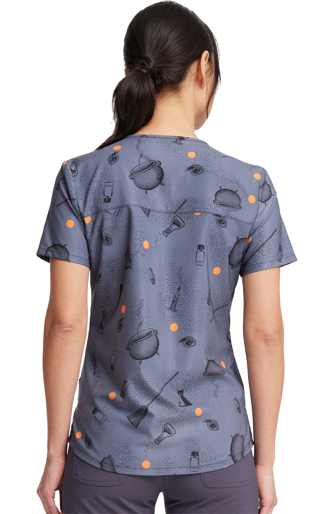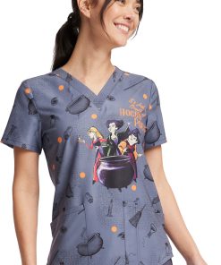 Get into the Halloween spirit with the cult classic-inspired Tooniforms by Cherokee Women’s Hocus Pocus Print Scrub Top. This silly, not spooky scrub top is sure to delight patients of all ages and has three pockets for your gear (and potions, too).