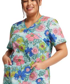 The Fashion Prints by Cherokee Women’s Mock Wrap Retro Buds Print Scrub Top features a vintage-inspired print that adds groovy style to your everyday uniform. Made from soft, breathable cotton with stretch for all-day comfort, this mock wrap scrub top works just as great as it looks.