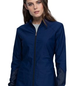 Take your look to the next level with the stunning FORM by Cherokee Women’s Zip Front Scrub Jacket. This functional, stylish scrub jacket features racerback mesh paneling, contoured seaming and a stylish stretch fabric.