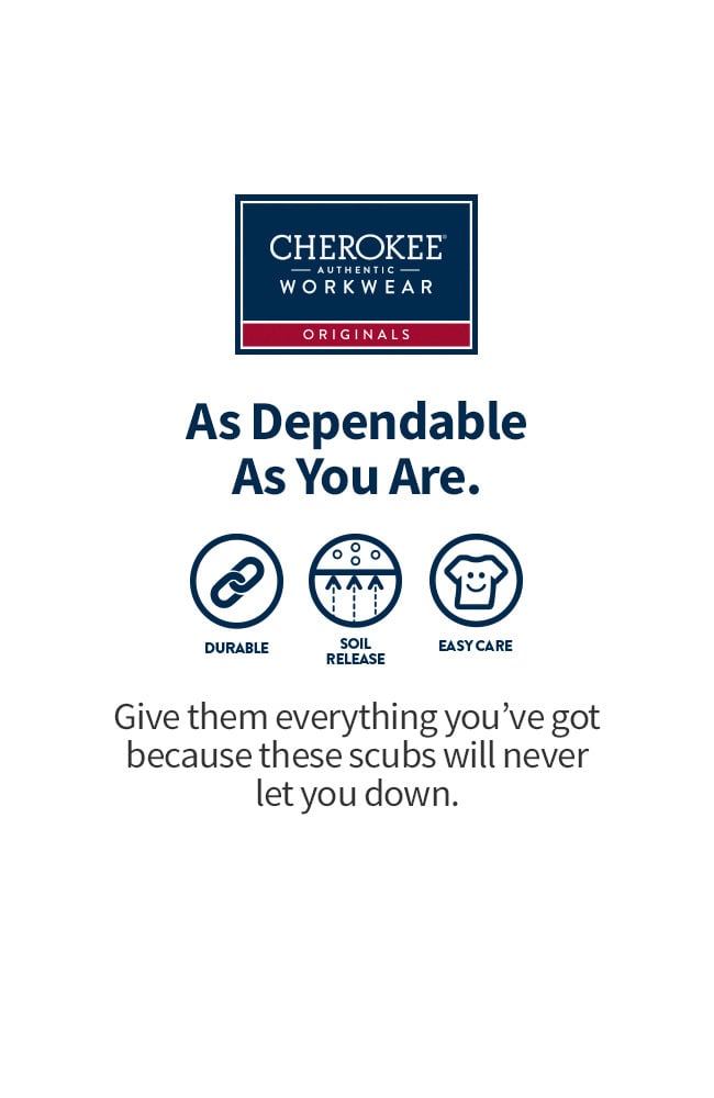 Comfortable and durable, the Cherokee Workwear Originals collection is designed to last. This men’s elastic waist scrub pant has an adjustable drawstring closure. There are four side cargo pockets, two front slash pockets, and one back patch pocket. Made of soil-release poly/cotton poplin.