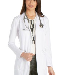 You’ll look sharp in this stretch lab coat from Core Stretch by Cherokee Workwear. The 4439 has a notched collar. There are patch pockets with an instrument loop over the left pocket. This jacket has a flattering shape thanks to front and back princess seams. There’s also a back belt.
