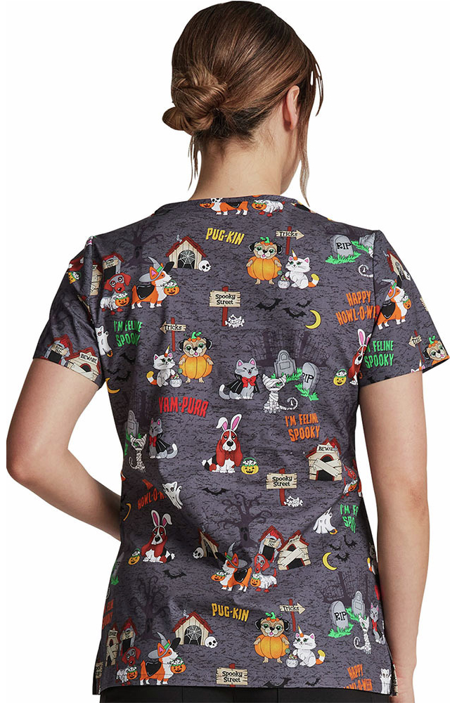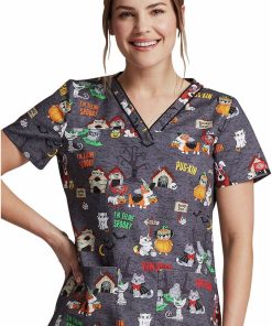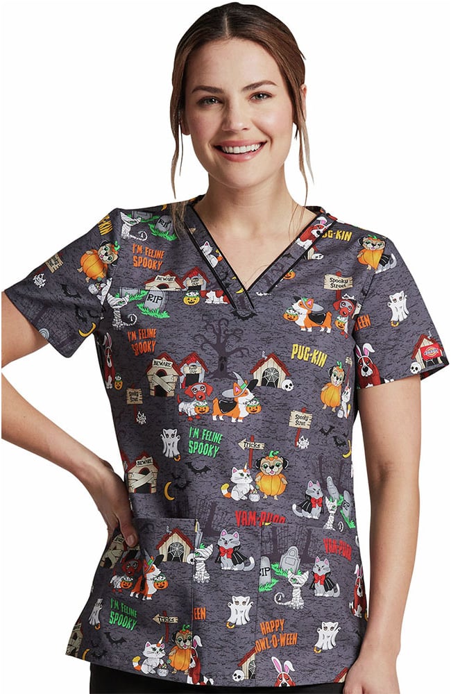 Look scary-good in the EDS Signature by Dickies Women’s Howl-Oween Friends Print Scrub Top. This chic, Halloween and fall holiday print is sure to make you smile.