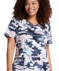 See camo in a fresh new way with the Dynamix by Dickies Women’s Soft Side Camo Print Scrub Top. Contrast space dye knit panels add cool comfort and sporty style to this must-have top.
