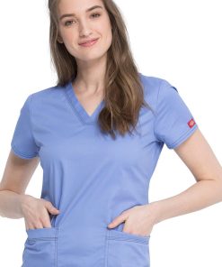 You’ll love the soft and smooth feel of this Gen Flex by Dickies Women’s V-Neck Solid Scrub Top. Contrast top stitching and a bungee loop add extra utility.