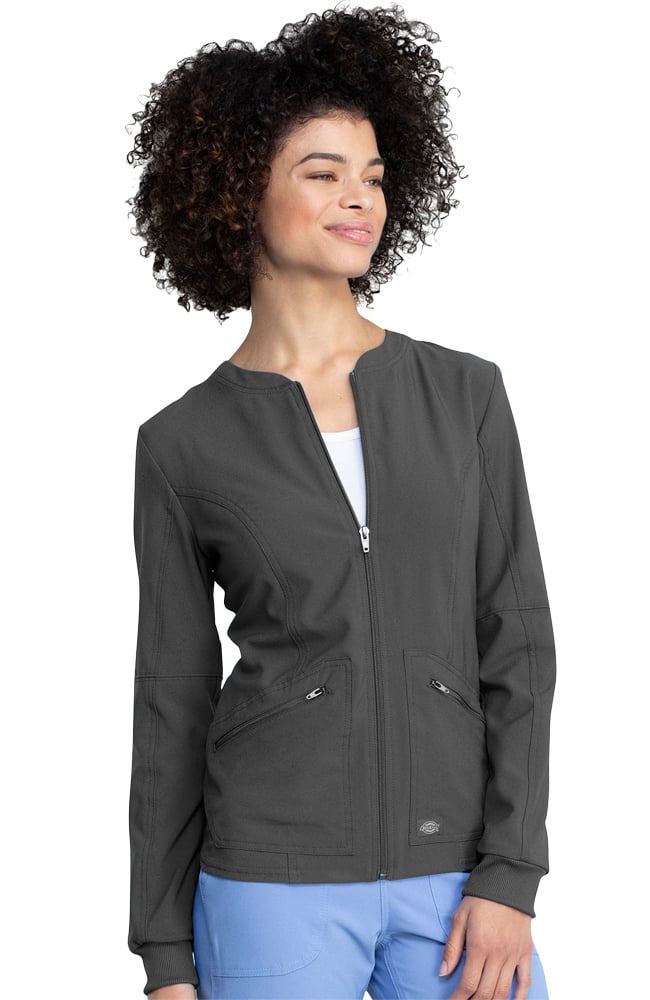 Enjoy a modern twist on a nostalgic look with the Retro by Dickies Women’s Warm Up Solid Scrub Jacket. Motorcycle jacket details and classic tailoring allow this iconic jacket to stand the test of time.