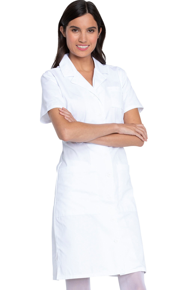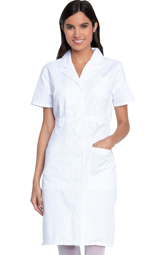 From EDS Signature by Dickies, the company known for quality and toughness, this classic missy-fit dress has a notched collar, an eight-button closure, 1 chest pocket, 2 patch pockets, and side vents. Features a front waistband with button tabs, bust darts, and back elastic for shaping. Brushed 60% Cotton/40% Polyester Twill.