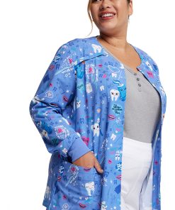 The EDS Signature by Dickies Women’s Fillings For You Print Scrub Jacket is guaranteed to make your patients smile. Ideal for dentistry settings, this warm-up jacket has an easy snap front closure, rib knit cuffs for extra comfort, and pockets for storage.
