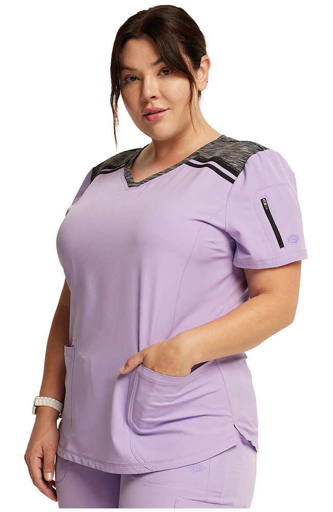Space dyed panels add detail to the Dynamix by Dickies Women’s V-Neck Solid Scrub Top. Stay within your uniform guidelines and show some personality.