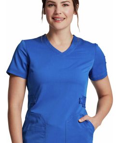 Take on your day in the Balance by Dickies Women’s V-Neck Solid Scrub Top. This pristine solid scrub top comes with side stretch panels that flatter.