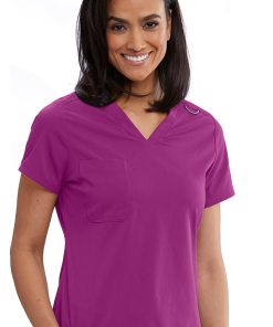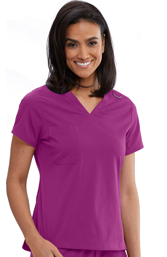 Enjoy the signature stretch fabric of the Spandex Stretch by Grey’s Anatomy Women’s Bree Tuck-In Solid Scrub Top. The medical scrub uniforms you have come to count on are now available in a tuck-in friendly style, to reduce excess bulk.
