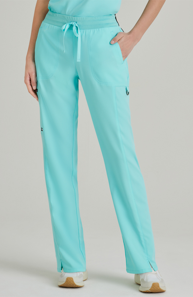 Designed to satisfy your competitive edge, the athletically-inspired Spandex Stretch by Grey’s Anatomy Women’s Kim Colorblock Scrub Pant is sure to add to your performance. Enjoy the sleek, subtle pockets, durable stretch fabric and bold colorblock statement.