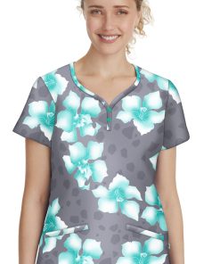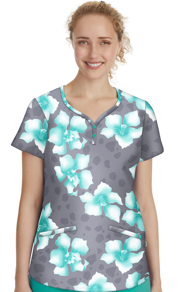 You’ll love the luxe comfort and vibrant print of the Women’s Isabel Scrub Top from Purple Label by Healing Hands. With decorative buttons and convenient pockets, this stretchy printed scrub top is sure to become a new favorite.