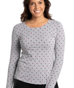 Feel comfortable wherever you go in the Purple Label by Healing Hands Women’s Mackenzie Pink & Heathered Geo Print Underscrub. The shirttail hemline and thumbhole cutouts add an athletic feel.
