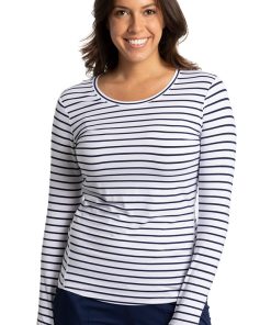 Feel and look your best in the Purple Label by Healing Hands Women’s Mackenzie White & Navy Stripe Print Underscrub. The classic navy and white stripes create a nautical look.