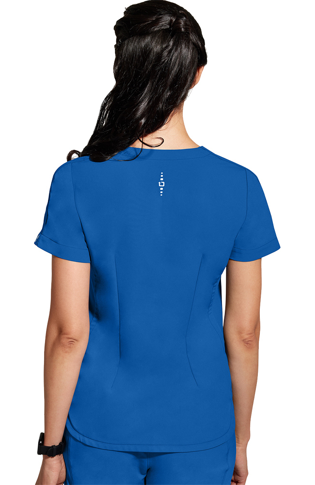 Reflective details and textured side panels add sporty style to the 360 by Healing Hands Women’s Skyler V-Neck Scrub Top. This mixed-media top wicks moisture to keep you cool and is made using sustainable fabric.