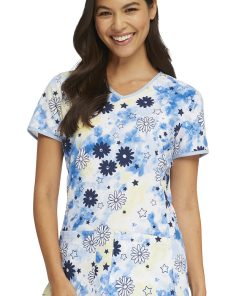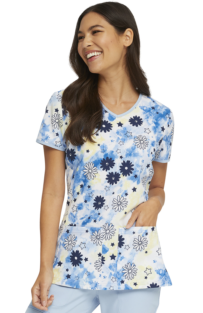 Show off your groovy warm-weather style in the Break On Through by heartsoul Women’s Daisy Spirit Print Scrub Top. Contrast ringer details add retro charm to this two-pocket scrub top.