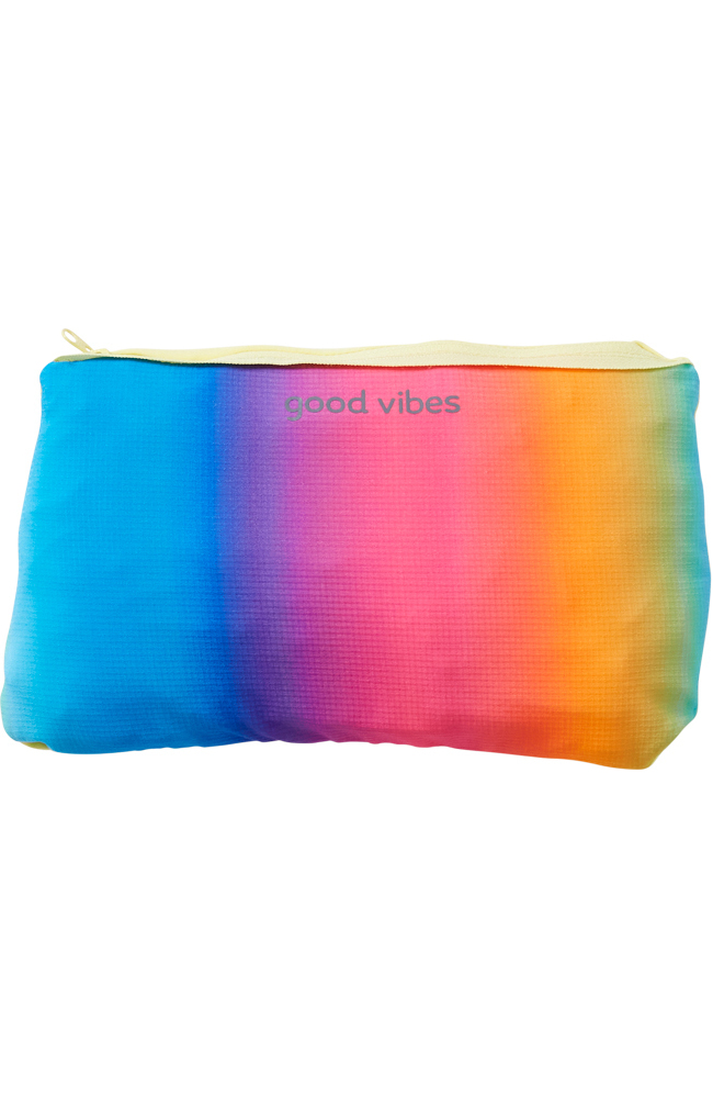 - Packs up in a rainbow pocket bag