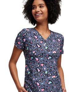 Throw a spin on your everyday uniform with the Break On Through by heartsoul Women’s Leopard Sweetheart Print Scrub Top. Cute and feminine, this cozy, breathable scrub top has stylized sleeves and princess seams that create a slimming silhouette.