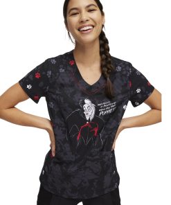 Disney’s iconic fashion-obsessed villain is center stage on the Break On Through by heartsoul Women’s Who Needs You Print Scrub Top. Paw prints, contrast stitching and ombre facing details add extra flair to this devilish top.