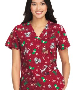 Celebrate the season in the Betsey Johnson by koi Women’s Bell Holly Jolly Puppies Print Scrub Top. With cheerful canines on a festive plaid background, this two-pocket top is sure to delight.