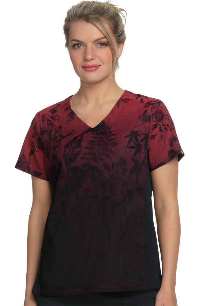 The koi Lite Women’s Reform Eastern Dreams Ruby Ombre Print Scrub Top adds a regal touch to your look. Deep, rich hues and ornate designs elevate your look.