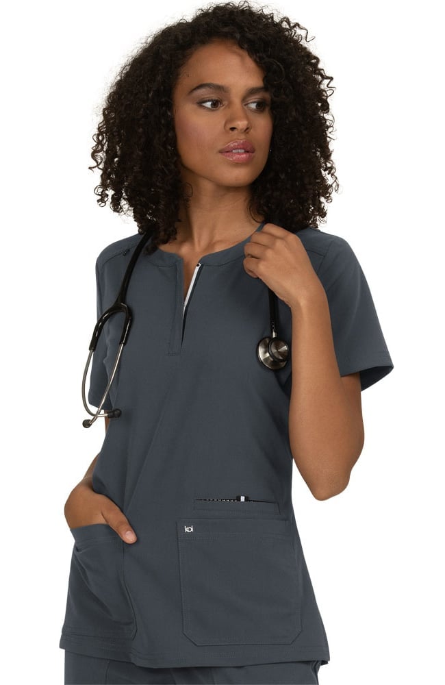 Look and feel your best in the classic, koi Next Gen Women’s Back In Action Solid Scrub Top. Never settle for less than the best with koi’s Next Gen fabric, fit and functionality.