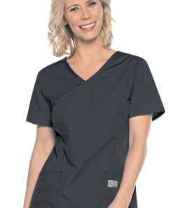 Find your perfect fit in the ScrubZone by Landau Women’s Surplice Solid Scrub Top. The mock-wrap neckline and patch pockets add elegant simplicity to your look.