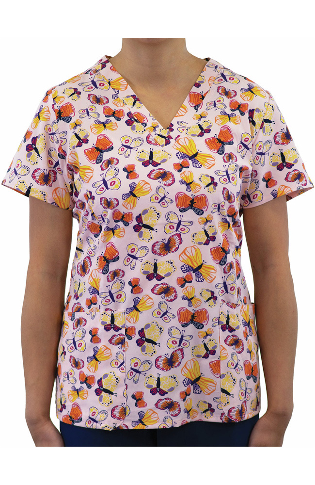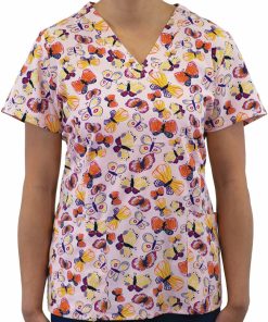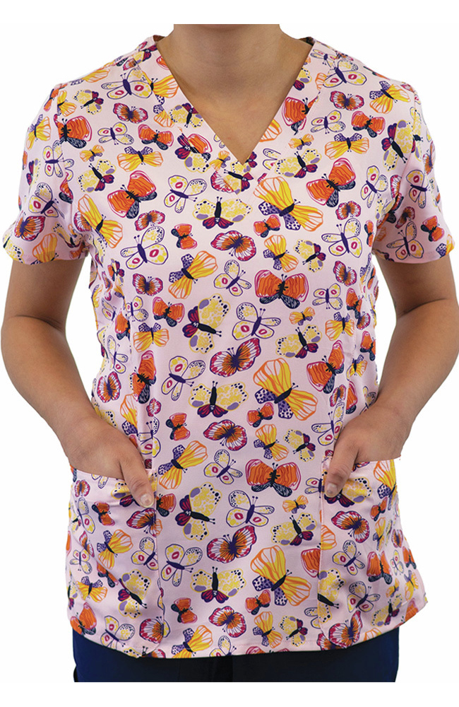 Float through your day in the Maevn Uniforms Women’s Candy Of Butterfly Print Scrub Top. Soft and comfortable, this scrub top has three pockets to keep your gear handy.