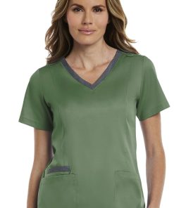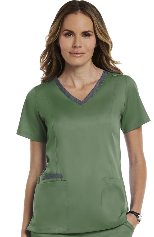 Upgrade your scrubs with this Matrix by Maevn Women’s Contrast Double V-Neck Solid Scrub Top. An edgy double v-neckline is further enhanced with contrasting color.