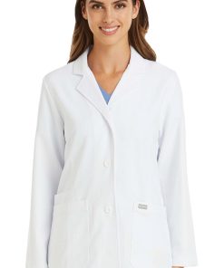 Make an impression in the Momentum by Maevn Women’s Notch Collar Consultation Lab Coat. This classic and professional lab coat has three front pockets and darts for a stylish shape.