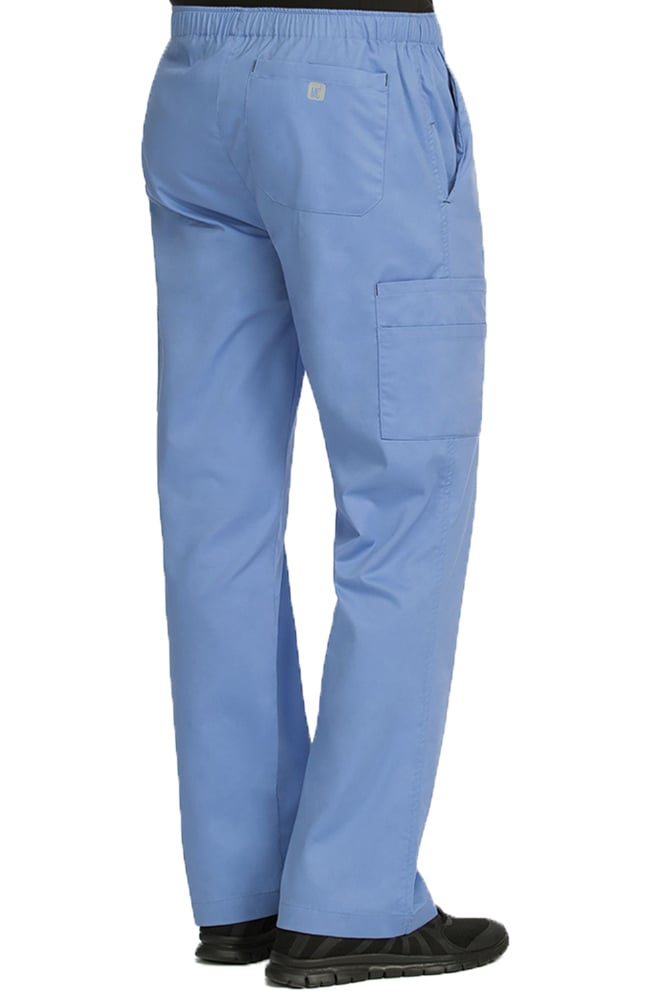 In a comfortable stretch twill, the 8702 elastic waist scrub pant from Med X is cut to be slimming and flattering. It has a roomy straight leg pant. The full elastic waist has a drawstring to adjust for a perfect fit and a functional fly zipper. There are double cargo pocket on each leg as well as side seam pockets and a back patch pocket.