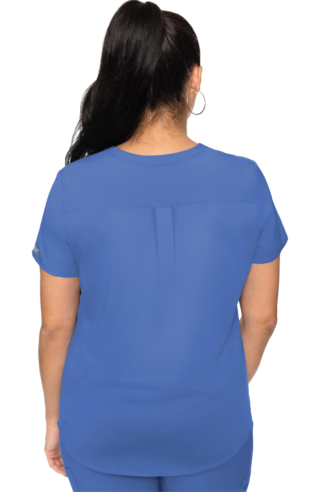 Look polished and professional in the ultra-comfortable, Energy by Med Couture Women’s Knit Back Solid Scrub Top. The knitted back panel and box pleat makes for an optimal range of motion that keeps you covered.