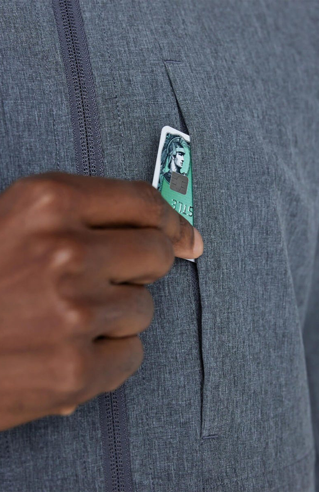 - On-seam zippered chest pocket