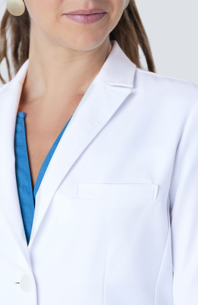 In a luxurious premium fabric, the Medelita Women’s J. Wright Slim Fit Lab Coat gives you the perfect balance of function and elegance. This durable and sophisticated lab coat has a feminine fit with design details that ensure range of motion.