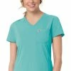 Be unstoppable in the sleek and ergonomic Liberty by Carhartt Women’s Comfort V-Neck Utility Solid Scrub Top. With such a flattering fit, you will be surprised by how much utility you can get out of the pockets and tabs found along this entire garment.