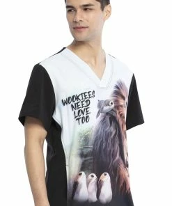 Share the message of friendship with this Chewbacca themed Tooniforms by Cherokee Men’s Chewie Print Scrub Top. Star Wars fans will love the Wookie and Ewok reference from the original Star Wars movies.
