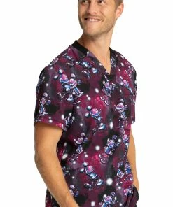 Feel the galactic vibes in the Tooniforms by Cherokee Men’s Metallic Mickey Print Scrub Top. This out-of-this-world scrub top features a futuristic Mickey print and a single chest pocket.