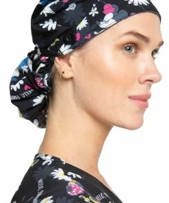 Perk up your work look with the cheerful characters on the Tooniforms by Cherokee Women’s Bouffant Hello Sunshine Print Scrub Hat. This Minnie and Daisy Duck print hat has a pleated design that accommodates longer hairstyles.