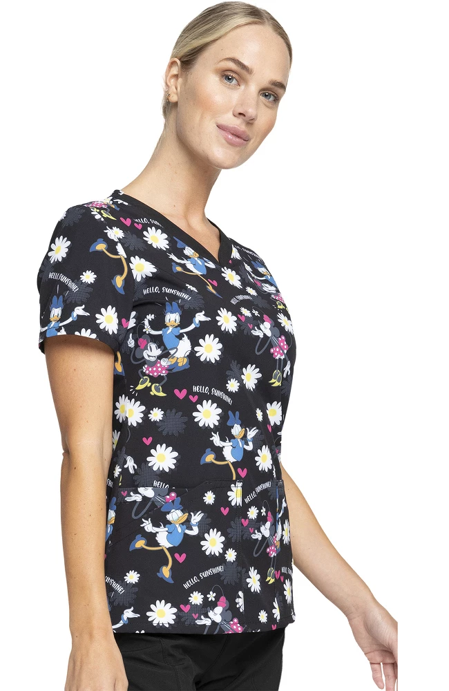 Add some cheer to your daily routine with the Tooniforms by Cherokee Women’s Hello Sunshine Print Scrub Top. This daisy and character-filled scrub top has two roomy front pockets for your gear.